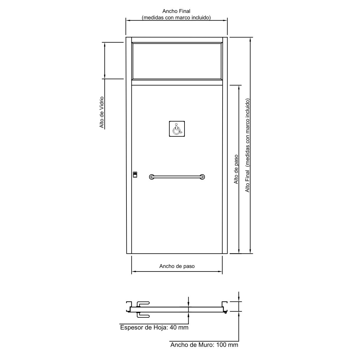 PUERTA BAÑOS DISCAPACITADOS CON PAÑO FIJO