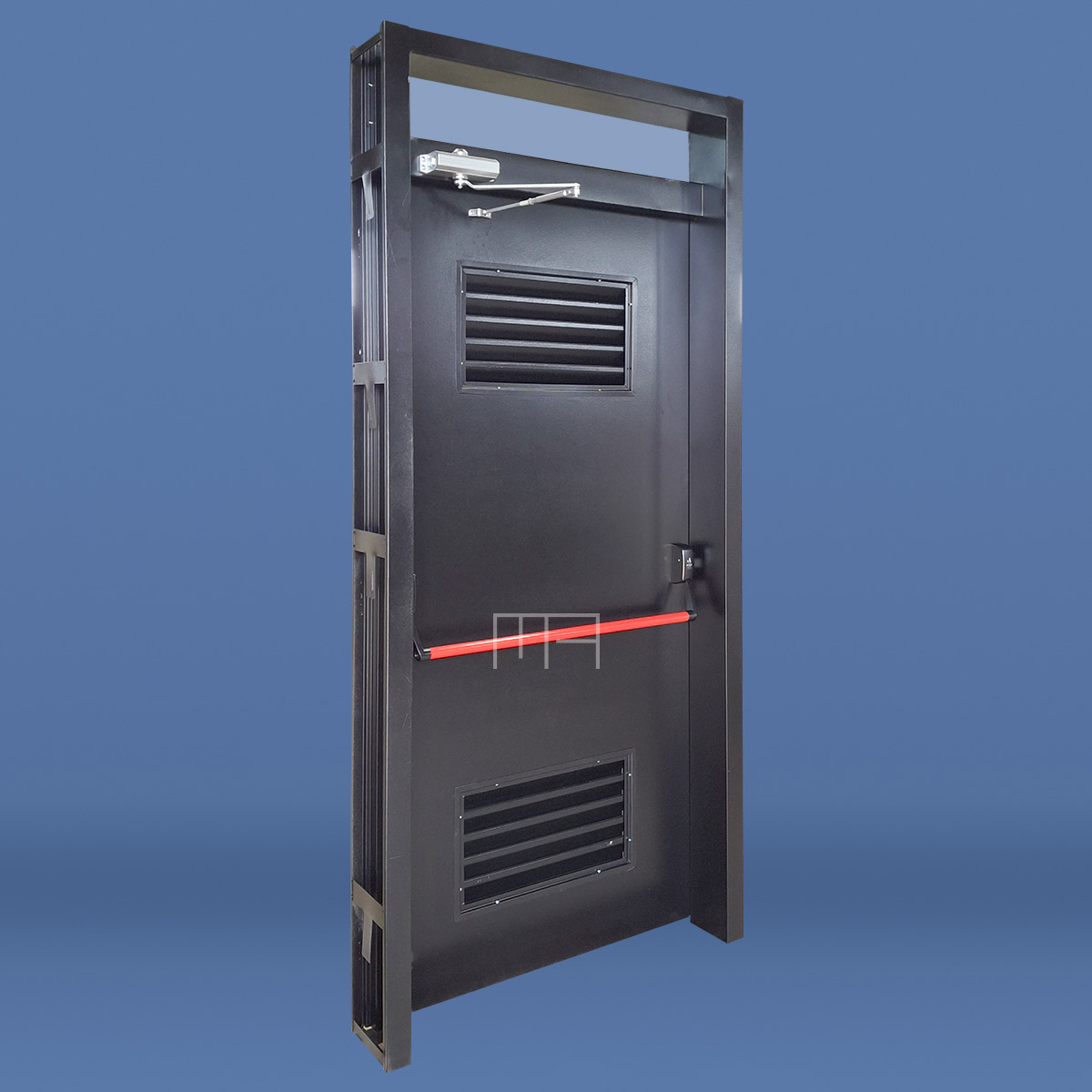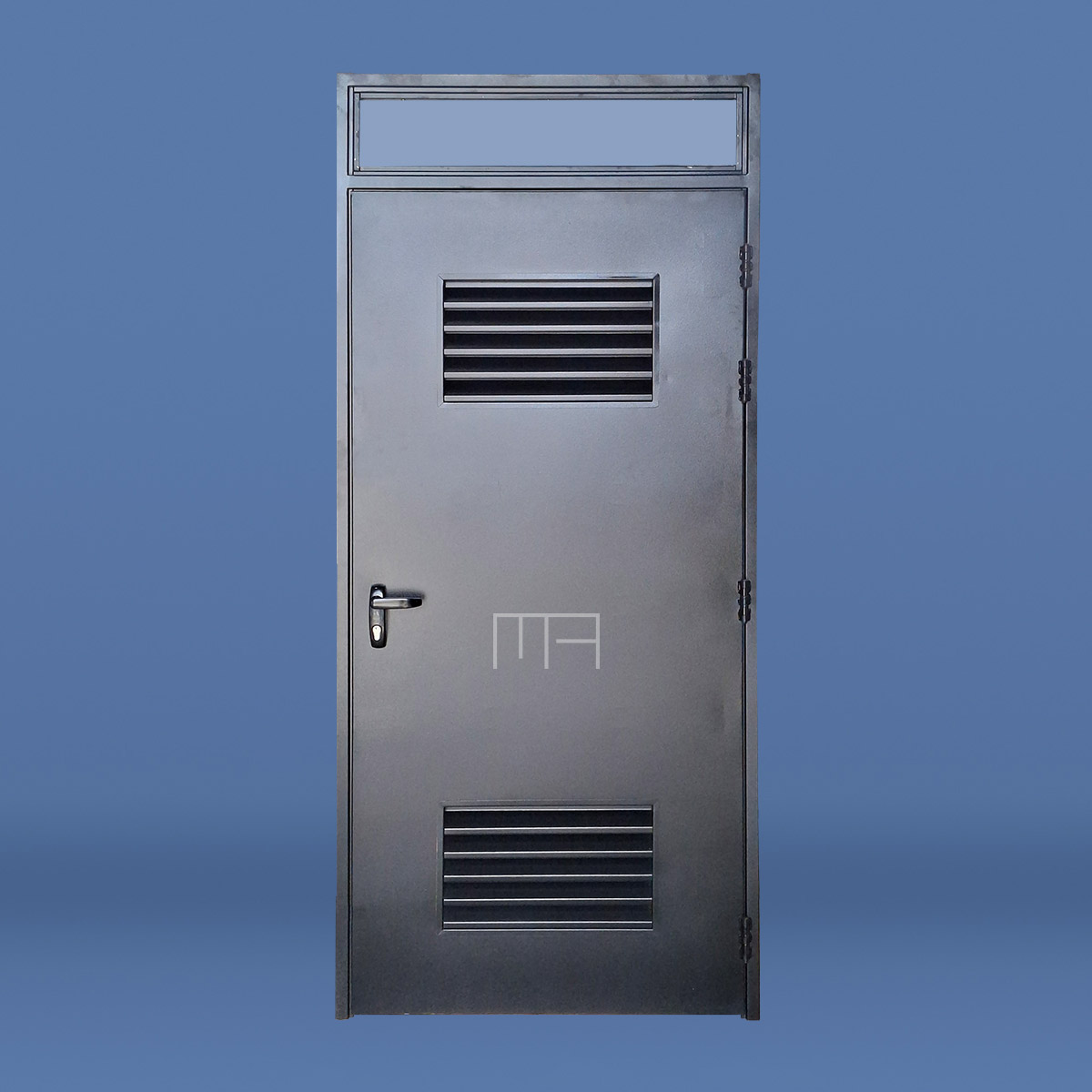 PUERTA DE EMERGENCIA CON REJILLAS DE VENTILACIÓN Y PAÑO FIJO SUPERIOR