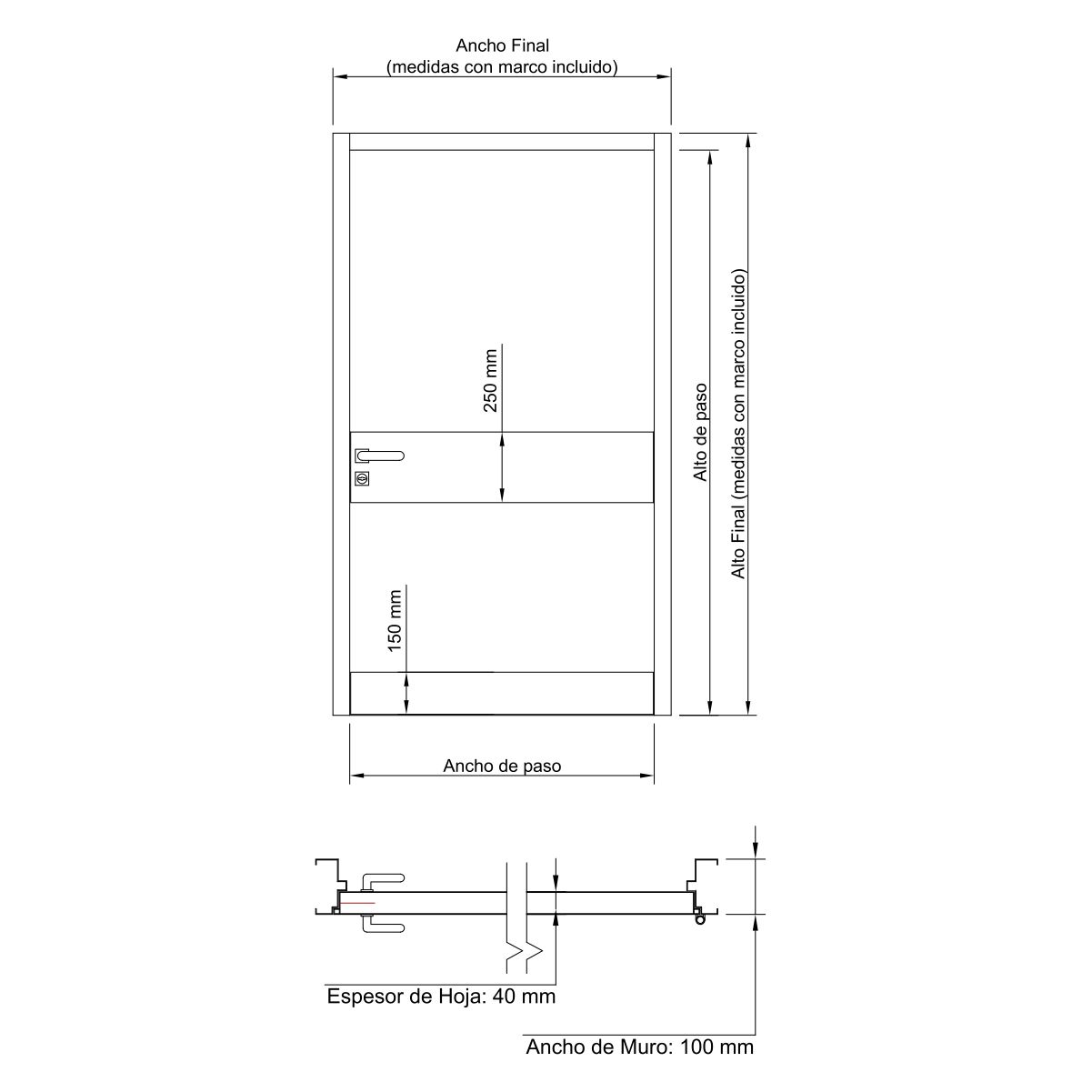 Con refuerzos internos. Doble contacto. Espesor de hoja. 40 mm Rellena de Aislante térmico.