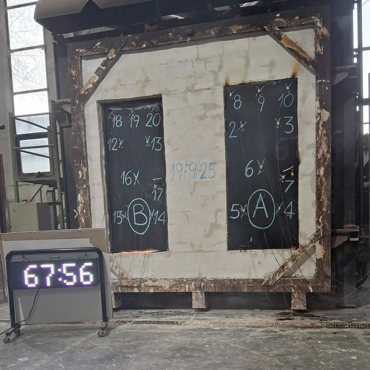 Construida en doble chapa BWG N°18 DD. Con refuerzos internos. Doble contacto. Espesor de hoja: 50 mm. Bisagra munición de tres discos de 130 mm. Cantidad: 4. Relleno Ignifugo