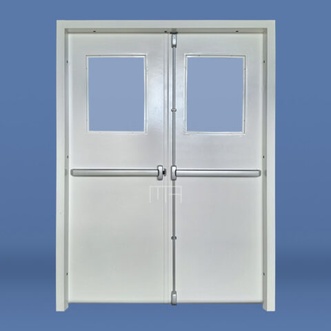 PUERTA DE EMERGENCIA DOBLE HOJA VISOR 40X60 CON BARRAL ANTIPANICO TOUCH