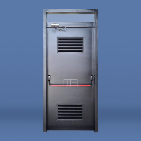 PUERTA DE EMERGENCIA CON REJILLAS DE VENTILACIÓN Y PAÑO FIJO SUPERIOR