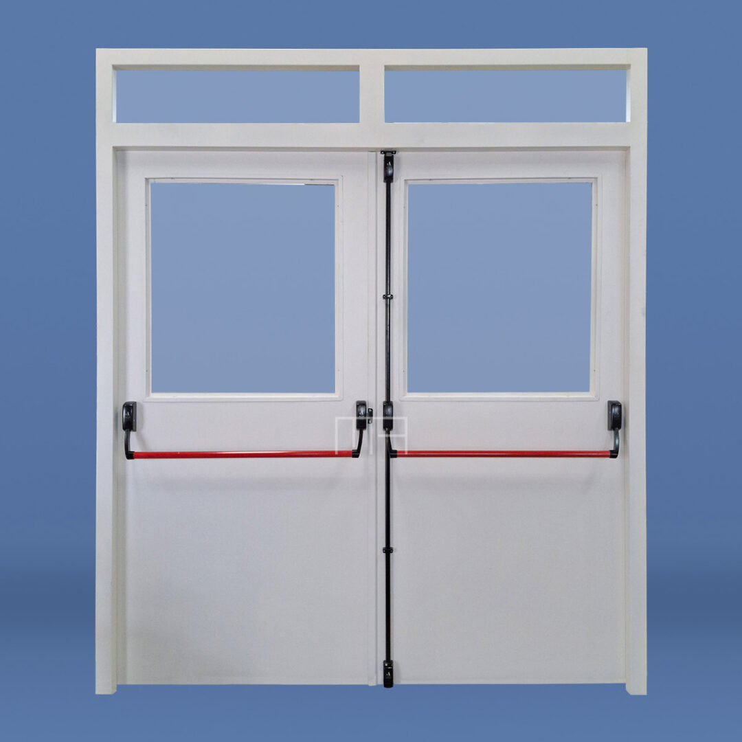 PUERTA DE EMERGENCIA DOBLE HOJA 1/2 VIDRIO CON PAÑO FIJO SUPERIOR