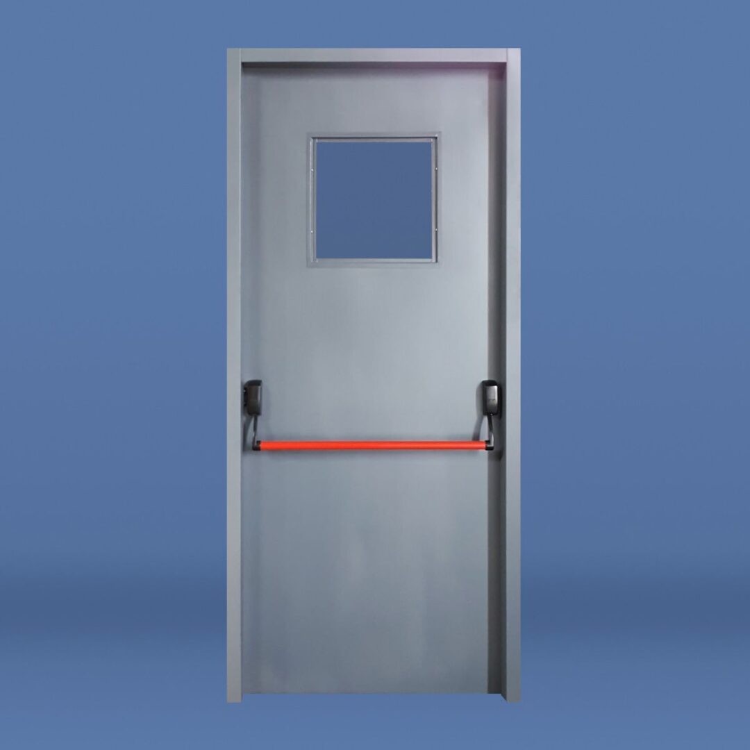 PUERTA DE EMERGENCIA CON BARRAL ANTIPÁNICO VISOR 40X40 CON CIERRE HIDRÁULICO