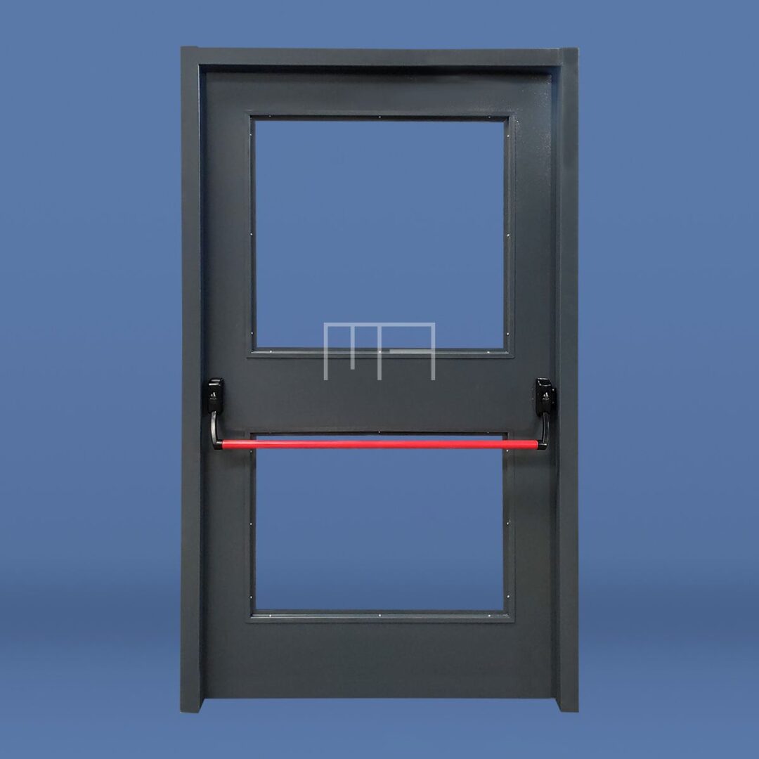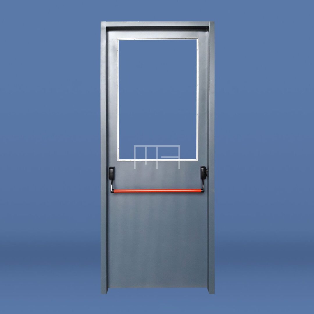 PUERTA DE EMERGENCIA CON BARRAL ANTIPÁNICO VIDRIADA CON FAJA DIVISORIA