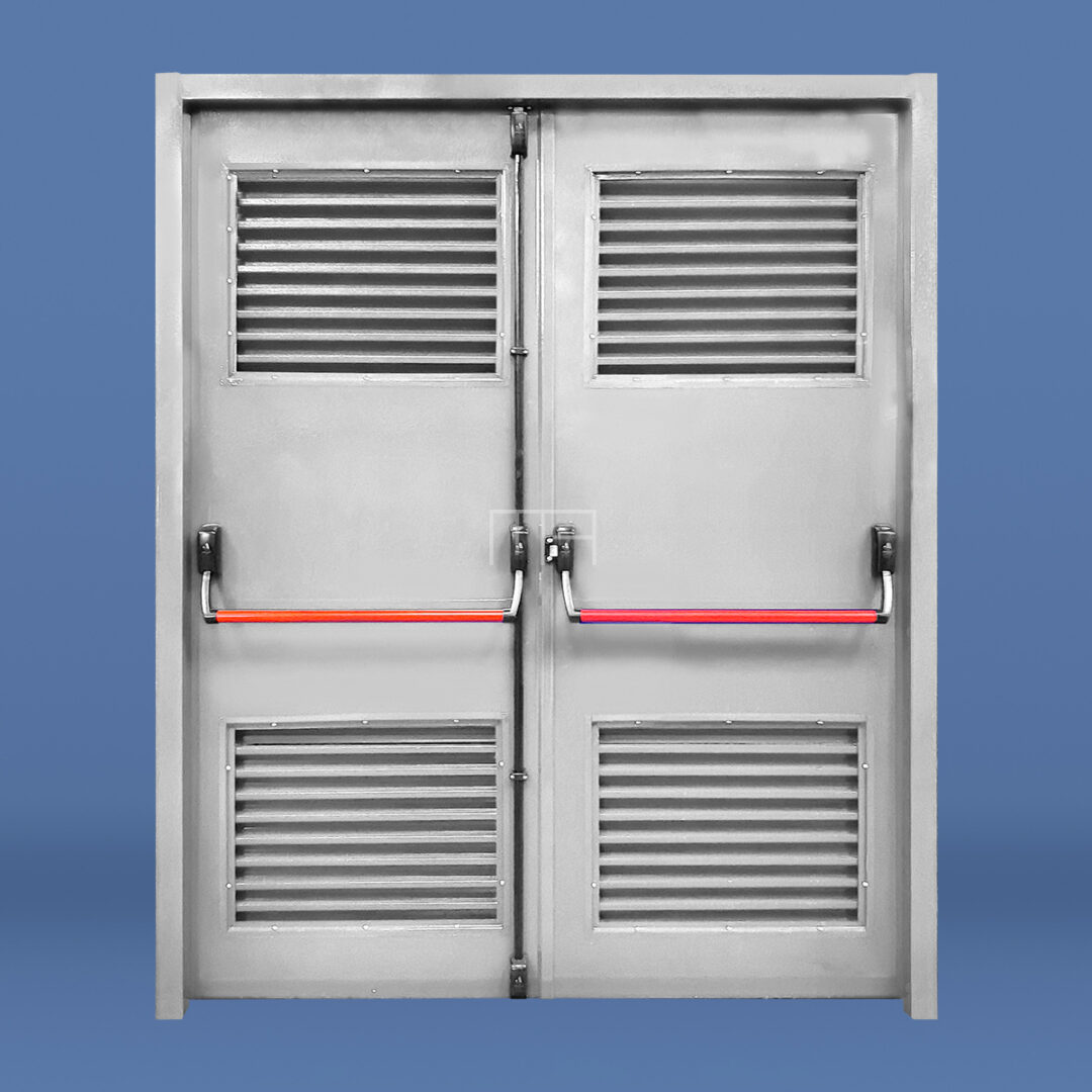 PUERTA DE EMERGENCIA DOBLE BARRAL CON REJILLA DE VENTILACIÓN