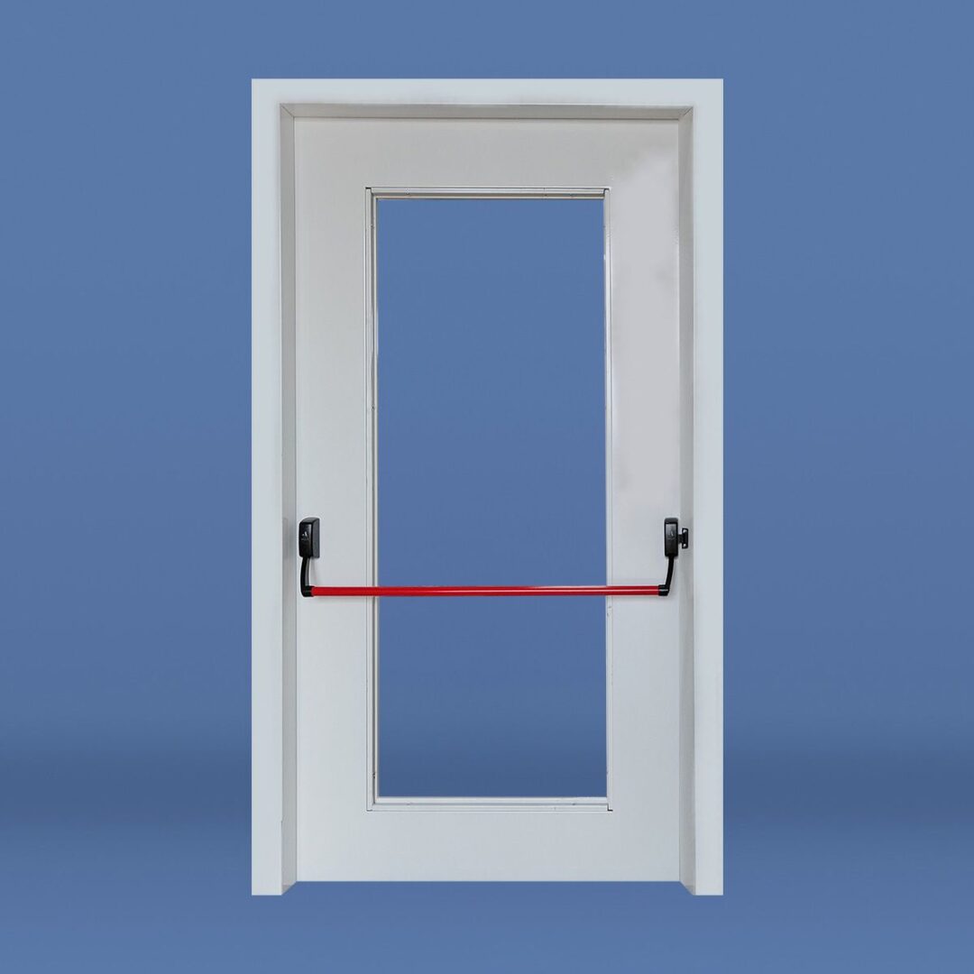PUERTA DE EMERGENCIA VIDRIADA CON BARRAL ANTIPÁNICO