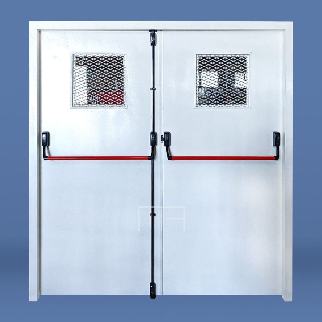 PUERTA DE EMERGENCIA ANTIPÁNICO DOBLE HOJA CON VISOR 40X40 ENREJADO